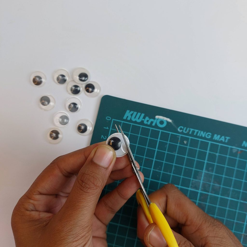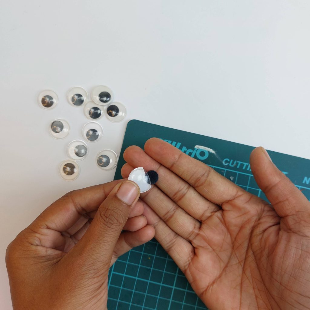 Take a black googly eye and remove the plastic dome if needed so that you are left with the flat black disc.