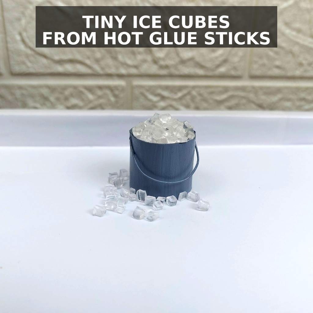For this first little trick, I used hot glue gun sticks to make tiny ice cubes. The material already has a slightly frosted, translucent look, which makes it surprisingly convincing in miniature drinks or ice buckets.