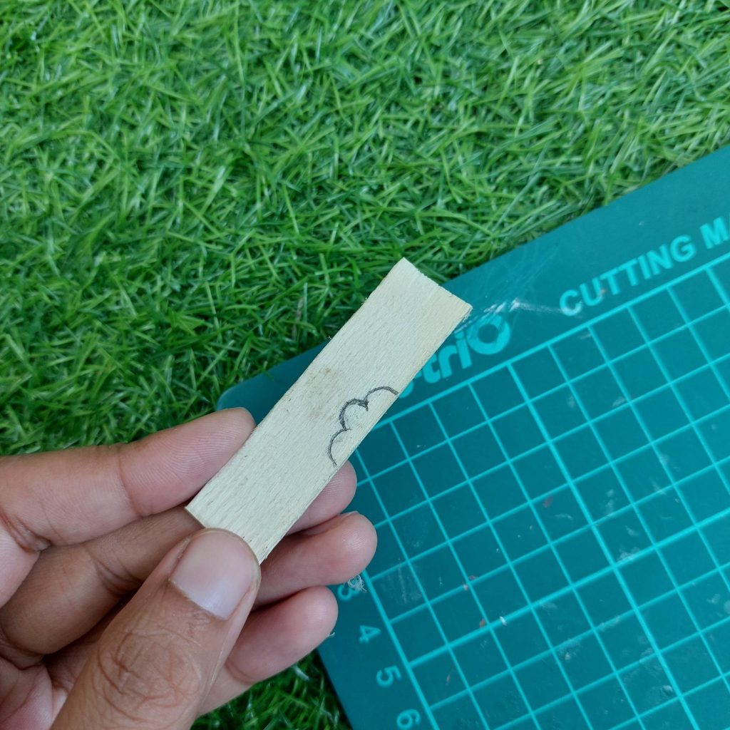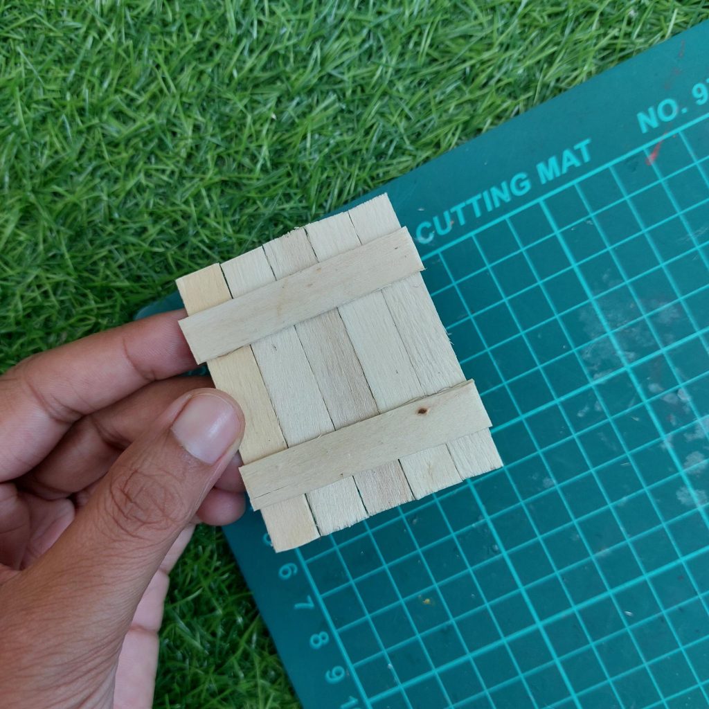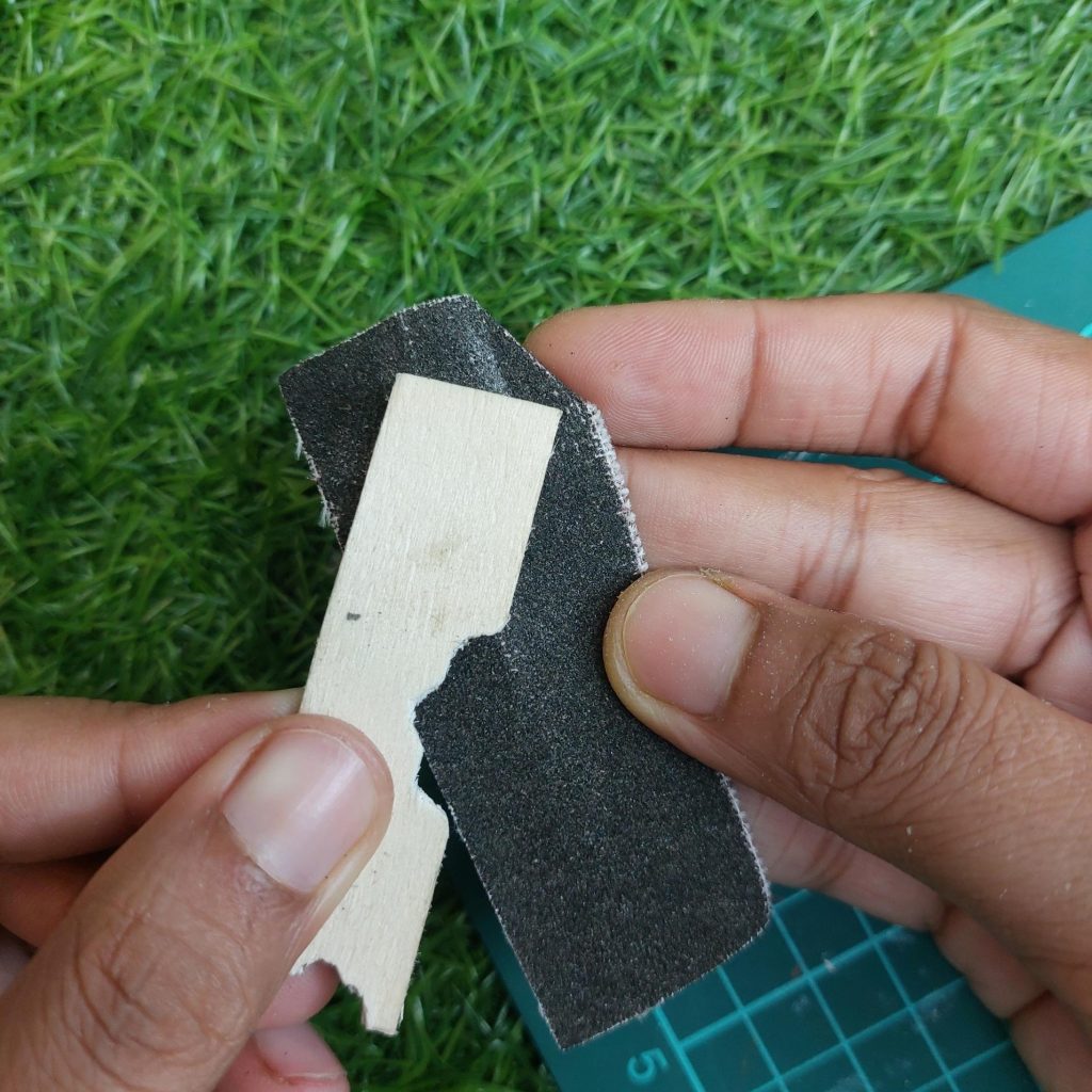 Each strip is roughly 0.8 to 1 cm wide, so you’ll need about 5 to 6 pieces, depending on the brand of popsicle sticks you use.
