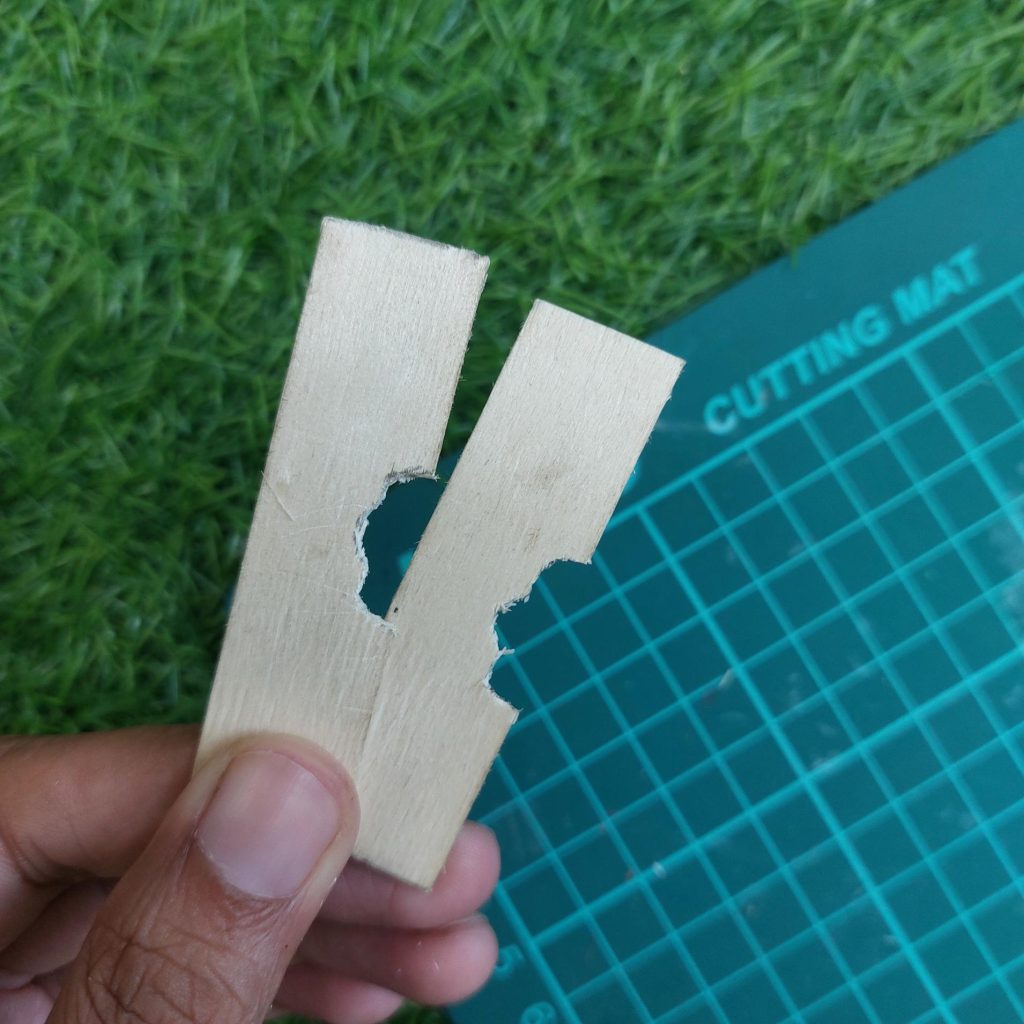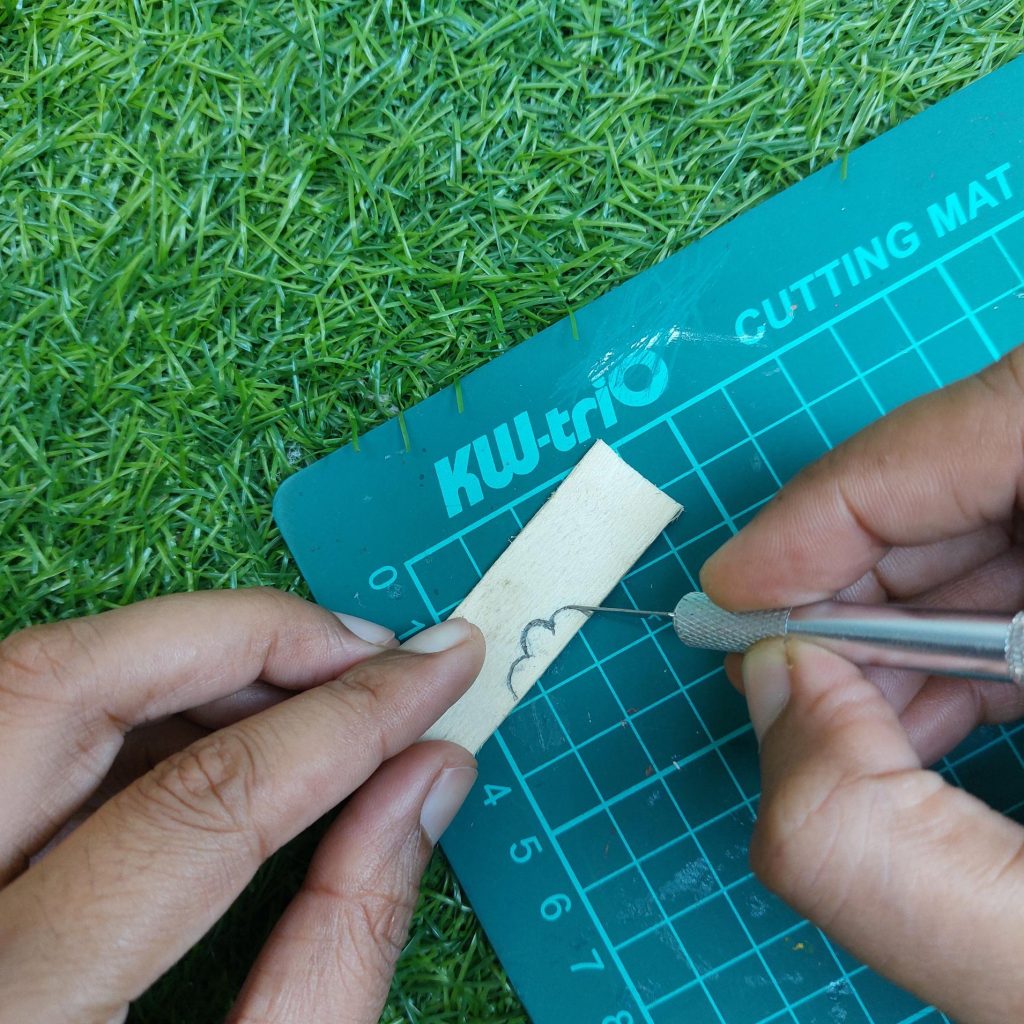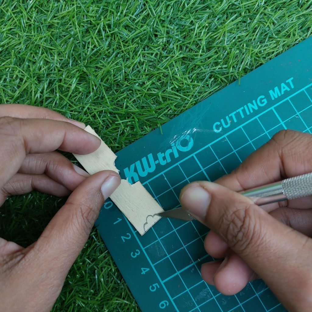 Each strip is roughly 0.8 to 1 cm wide, so you’ll need about 5 to 6 pieces, depending on the brand of popsicle sticks you use.