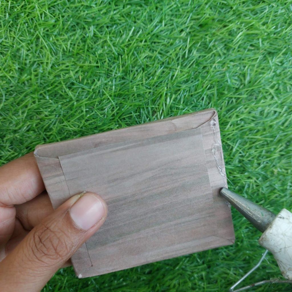 - Attach the top panel (7 × 8 cm).