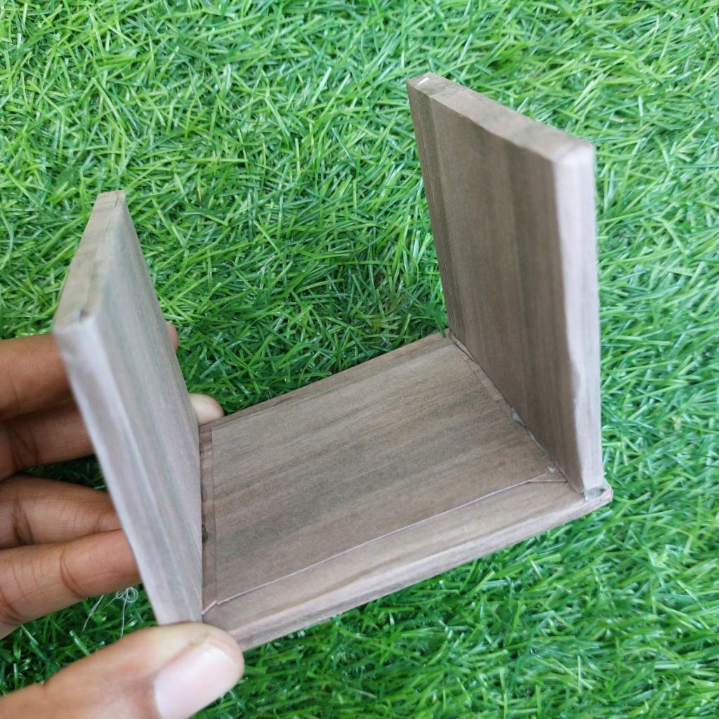 - Glue the drawer sides onto the 7 × 7 cm drawer base.