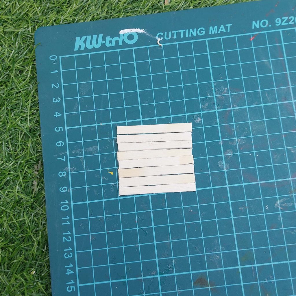 - Cut your seat slats to 3.5 × 0.5 cm.