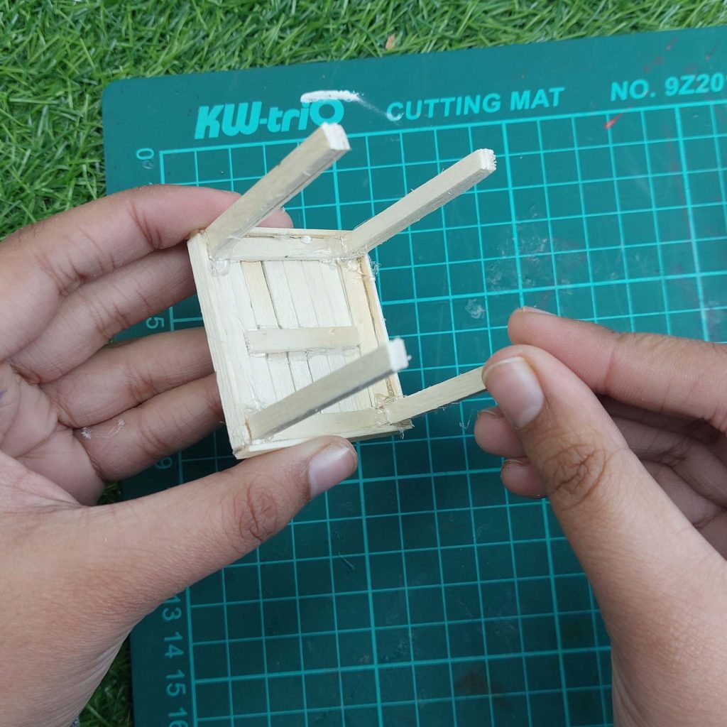 It’s mostly straight cuts, basic assembly, and a bit of patience while the glue dries. I made this little dollhouse table with two matching chairs using regular popsicle sticks and a craft knife, no fancy tools needed.