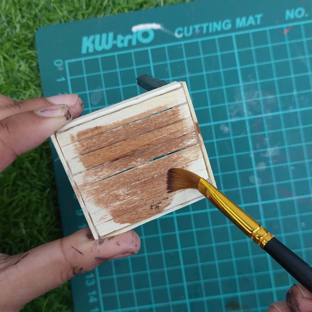 Don’t worry about perfection here—slight brush marks actually make it look more realistic at this scale.