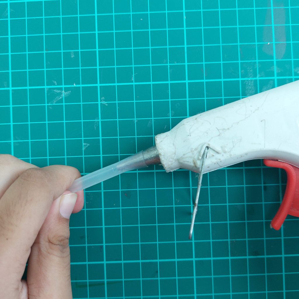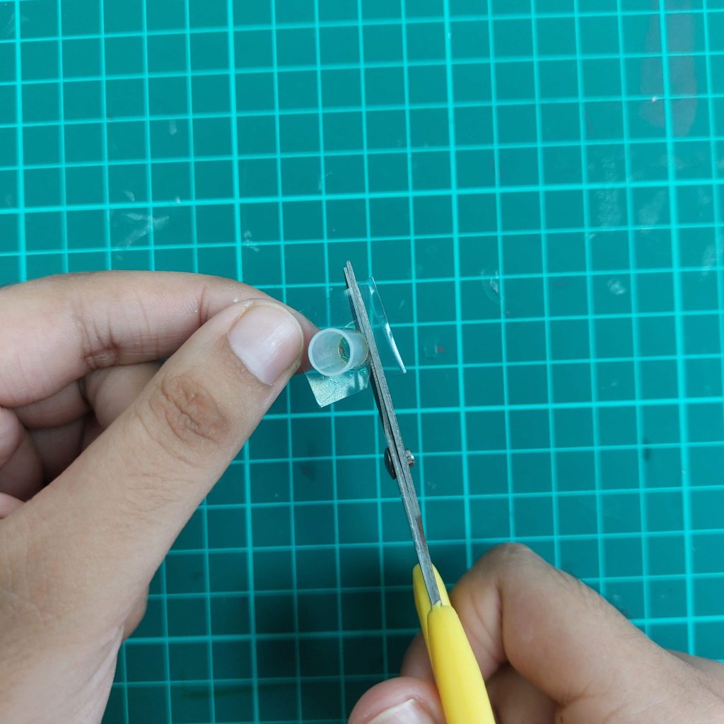Cut off the plastic tube from the spray using a cutter. This will form the base of your glass.