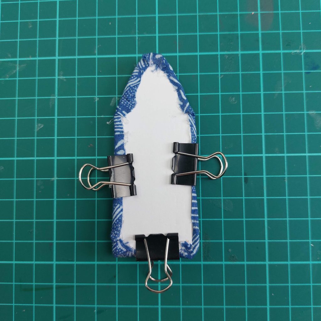 Glue a piece of tissue paper on top of the board to create padding. Trim it to fit.