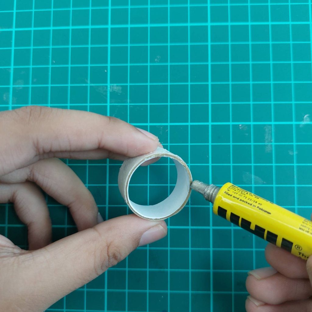 Apply glue around one edge of the roll and press it onto cardstock. Let it dry and then trim off the excess to create a neat base.
