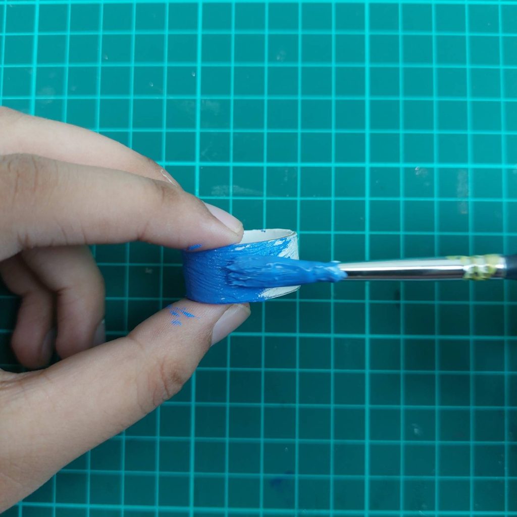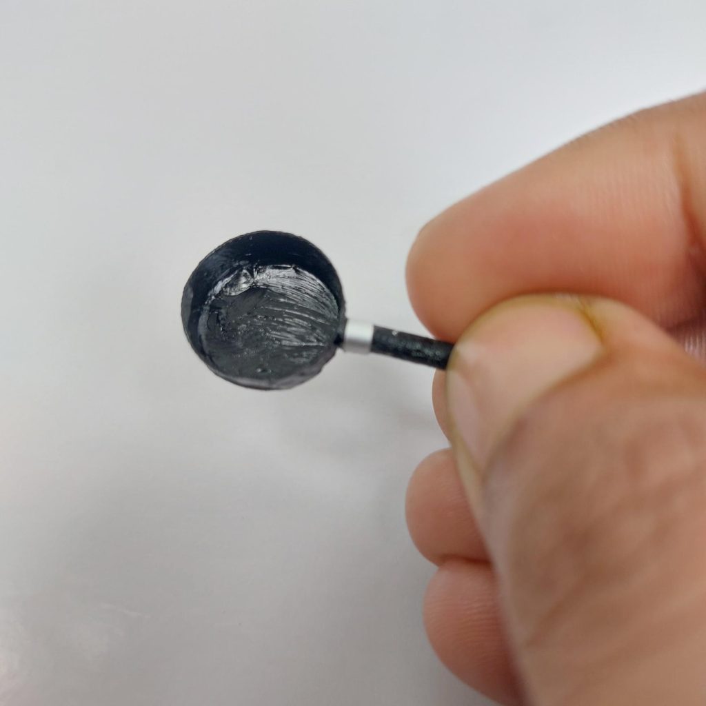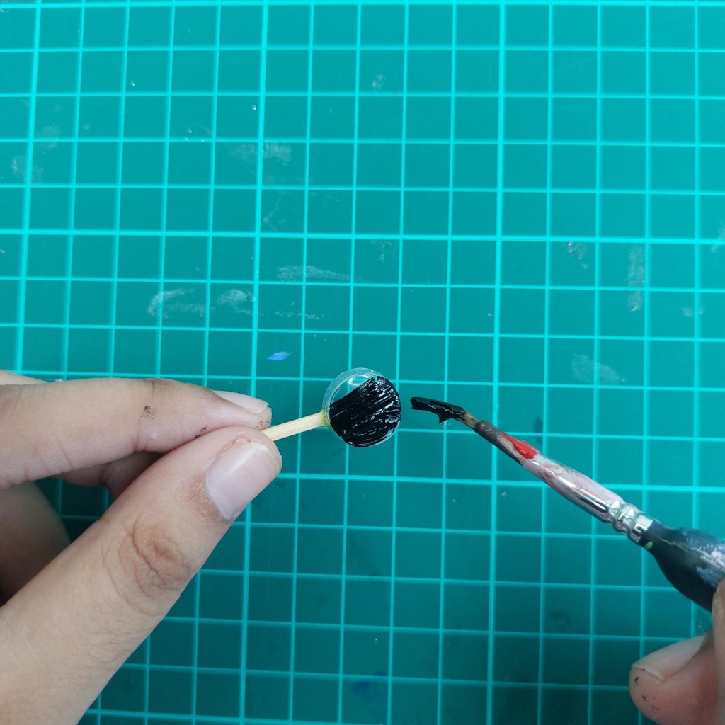 Cover the inside and outside of the blister with black acrylic paint. Also, paint the handle black to match.