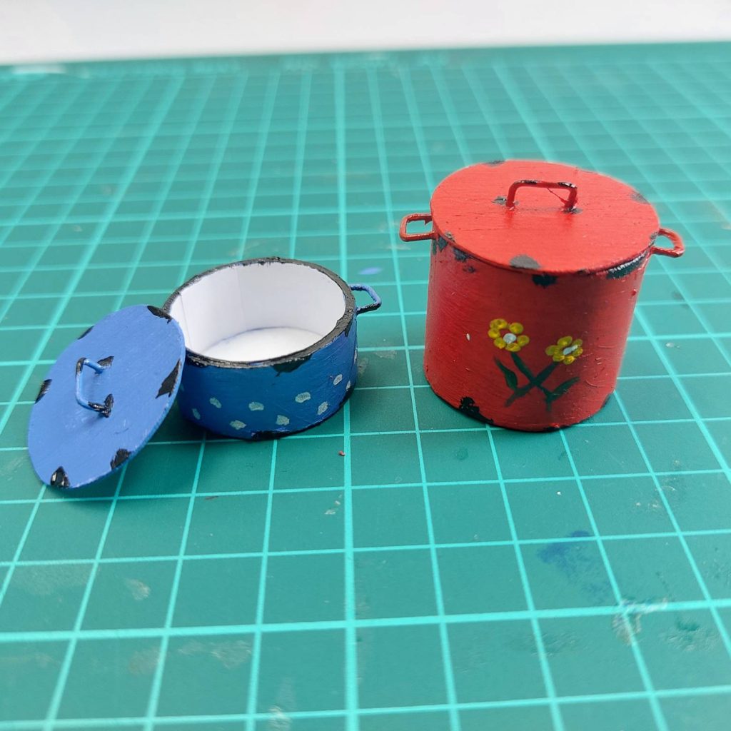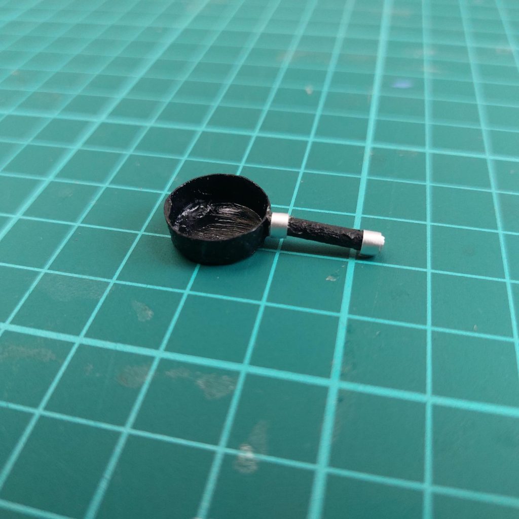 Allow the paint to fully dry, and your miniature pan is ready to be placed in your dollhouse kitchen!