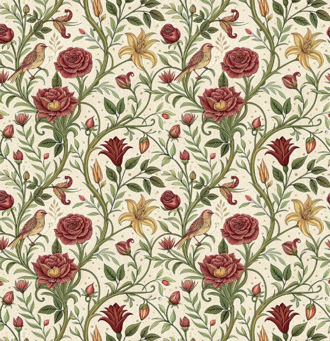 Floral wallpaper patterns inspired by early 20th-century Art Nouveau.
