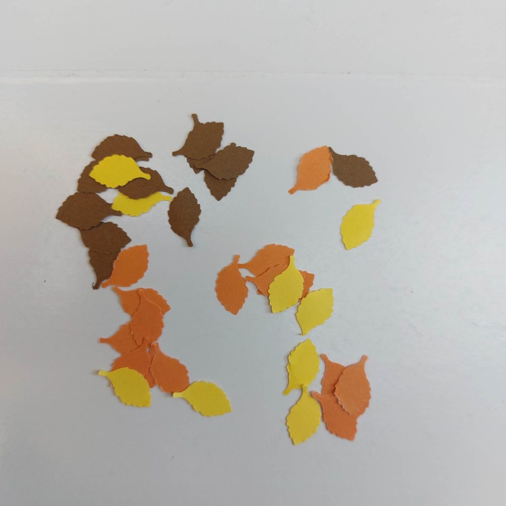 Use a leaf punch to create several tiny leaves from each color. You’ll need around 20–30 leaves, depending on how long you want the garland.