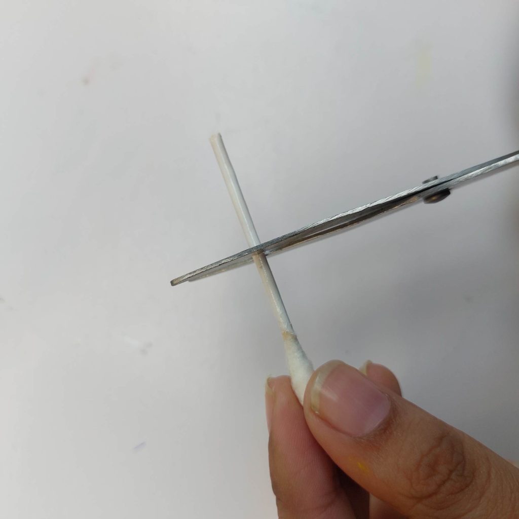 Glue the cut end of your cotton swab firmly onto the base and let it dry.