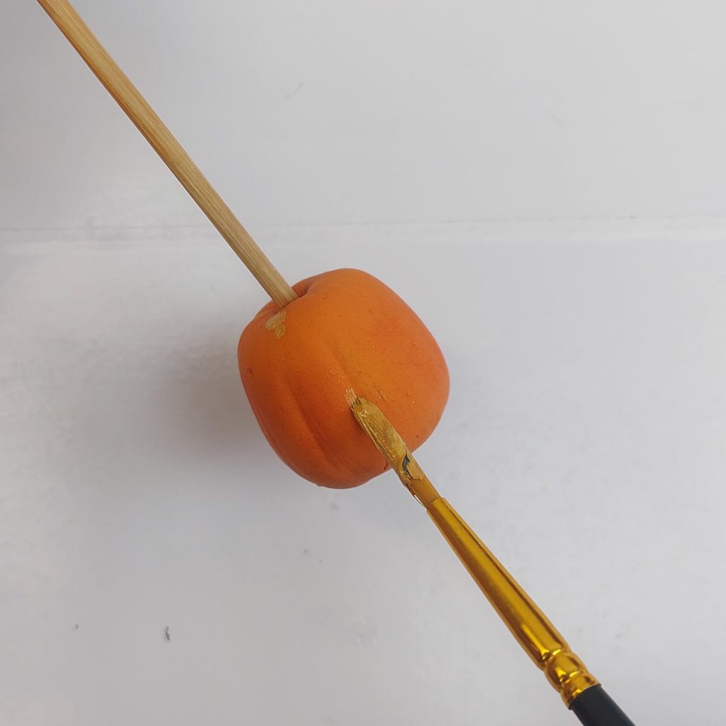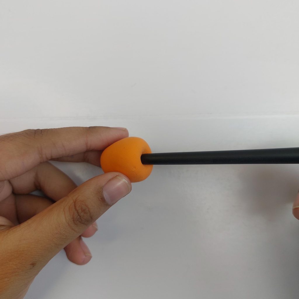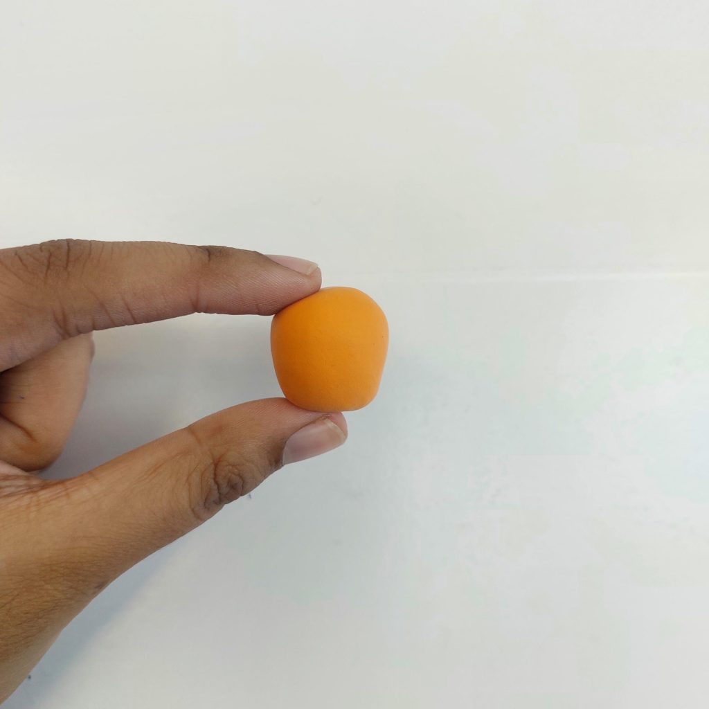 Roll a small ball of orange clay and slightly flatten the bottom so it stands upright.