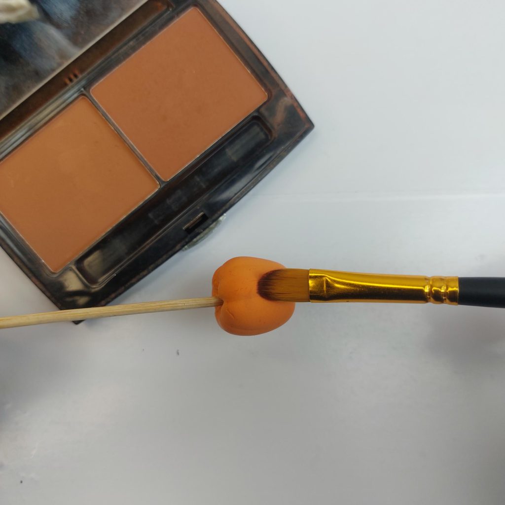 Brush on a little brown chalk, eyeshadow, or diluted paint to highlight the grooves and give the pumpkin more depth.