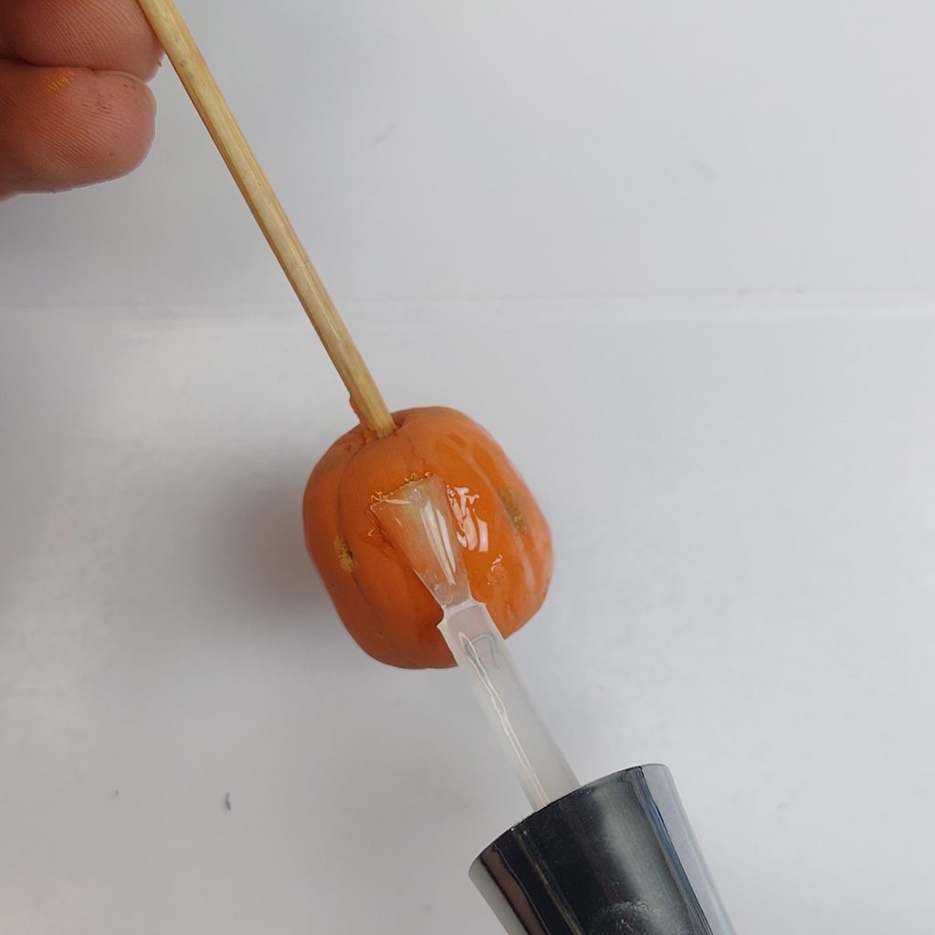 To finish, brush on a coat of clear nail polish or gloss varnish to give your pumpkin a smooth, realistic finish.
