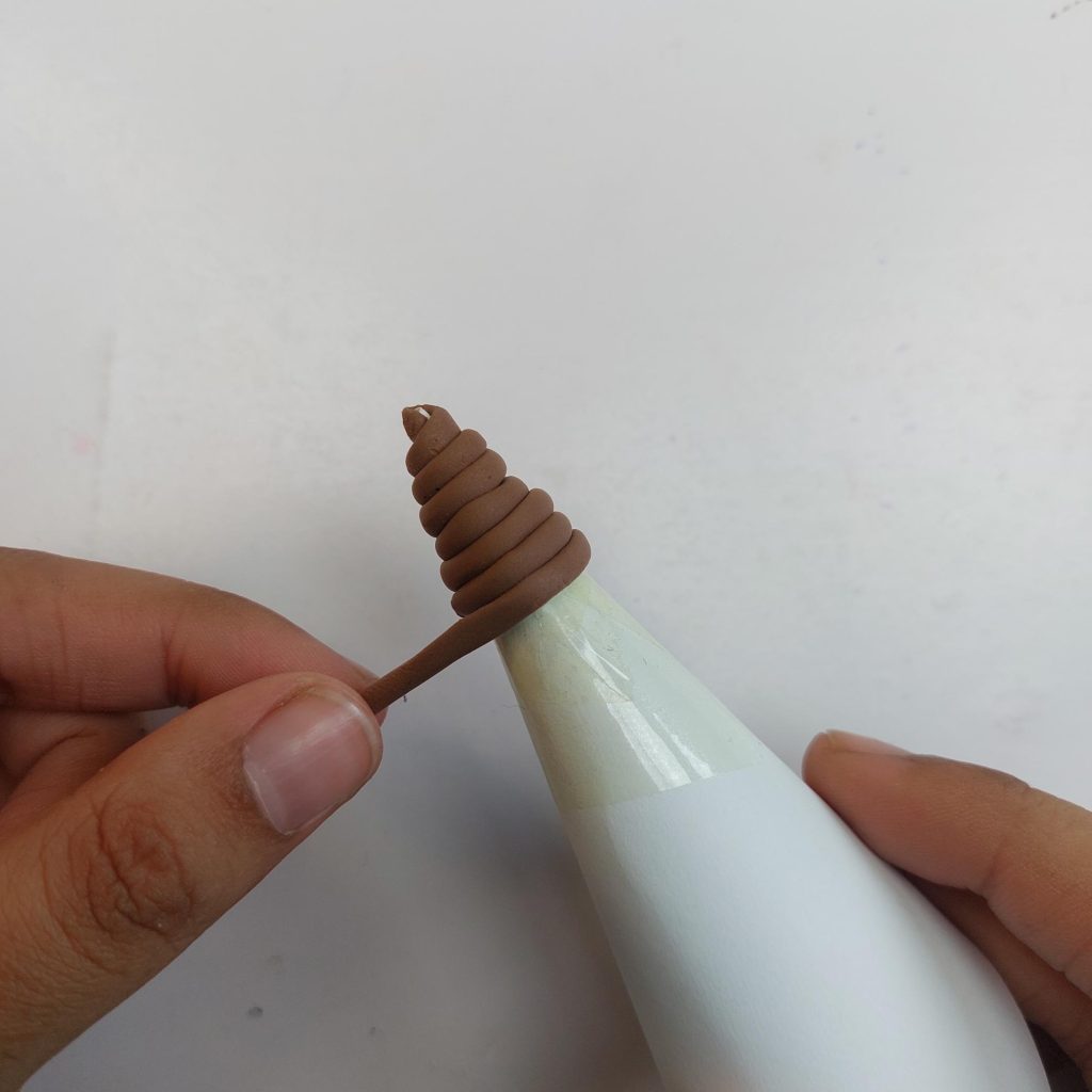 Wrap the clay snake around a cone shape (I made one from paper), starting at the tip and spiraling downward. Try to keep the coils close together.