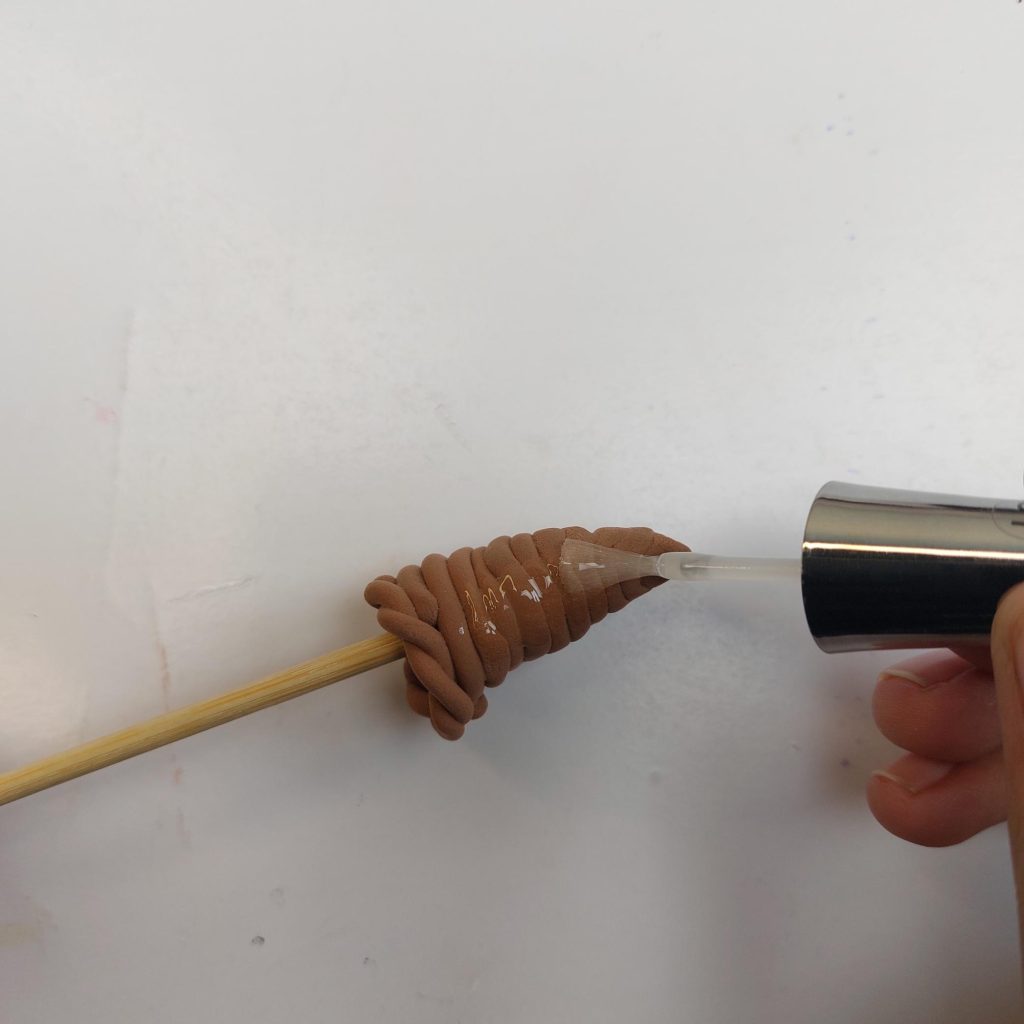 Roll a long, even snake of brown clay. This will form the spiral shape of your cornucopia.