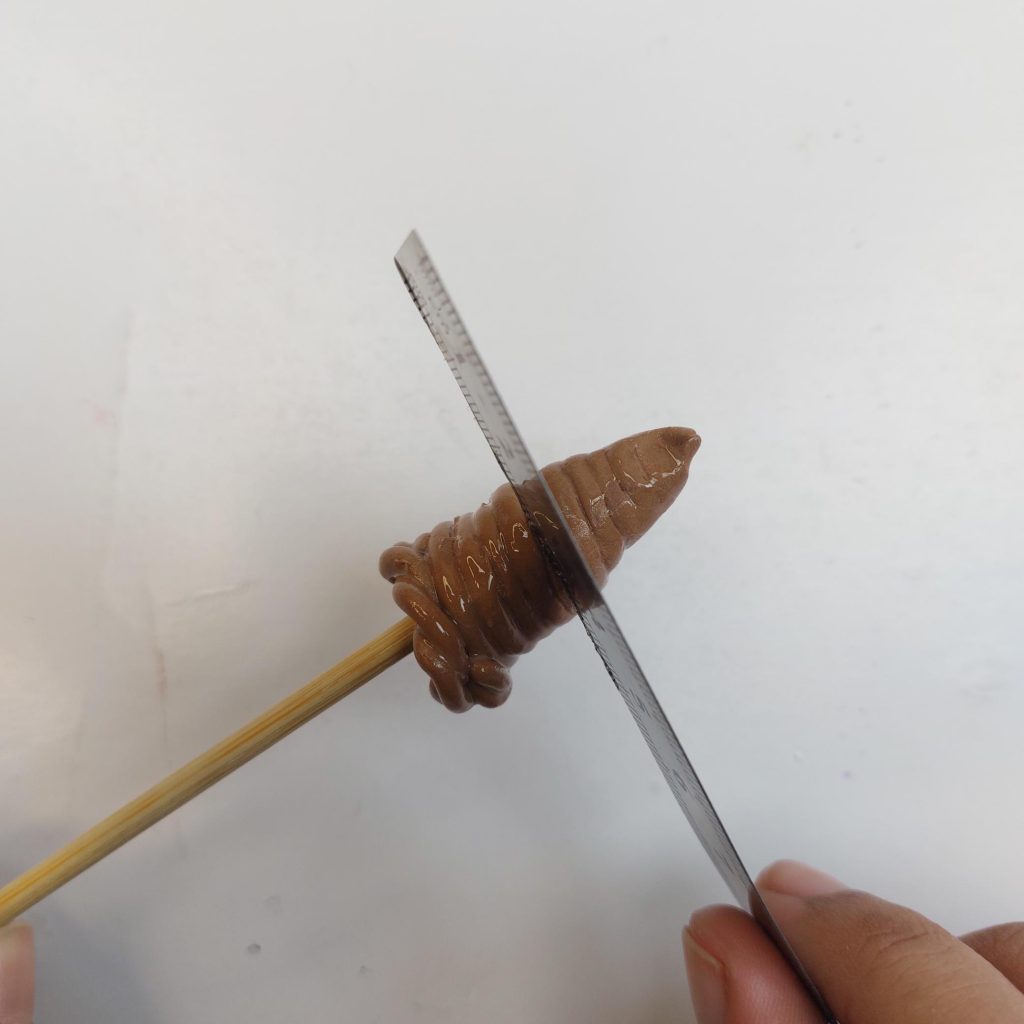 Use a toothpick or a ruler to add little ridges or details to make it look more like a woven horn.