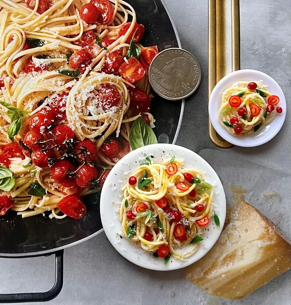 Miniature pasta dish by OnceUponaTinyCupcake on Etsy