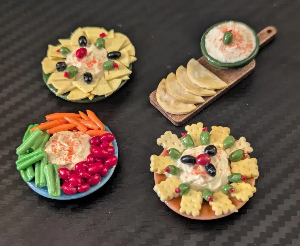Miniature dollhouse hummus dip platter by PennyJoshMiniatures on Etsy